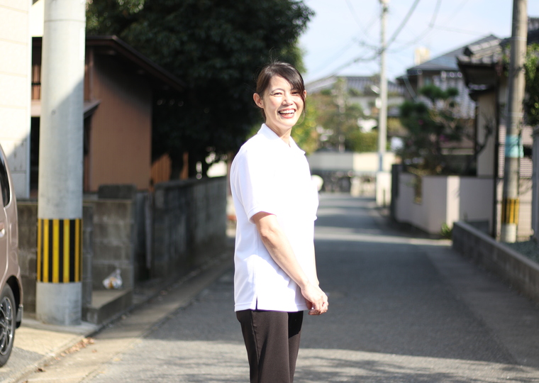 施設に併設された訪問看護ステーションからのサービス提供のため、車や自転車での移動もなく、周りには同じリハスタッフがそばにいます。
