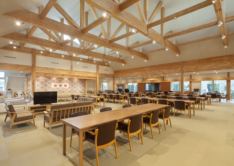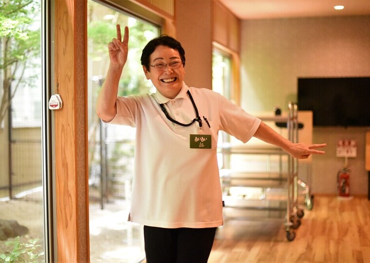 101床の住宅型有料老人ホームに、定員110名の大規模なデイサービスセンターを併設した「ケアタウンあいあい飯塚」。約90名のスタッフが活躍。充実した研修制度や、資格取得支援制度などの当社規定に基づき、スタッフ個人のスキルアップも可能としています。